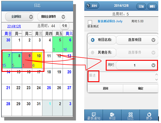 通过不同颜色的日历界面,项目参与人可快速获知自己项目审批结果